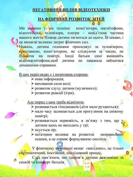 Будьте гарним прикладом для своїх дітей у ставленні до власного здоров΄я. Ведіть здоровий спосіб життя.